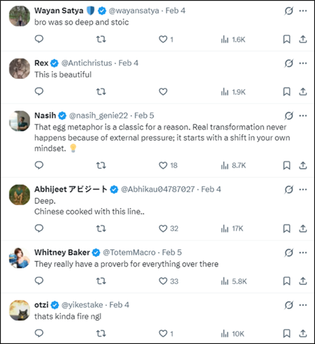 没猜想这句话把好意思国东说念主看振作了,说这个譬照确凿太精妙了,这是什么神奇的古典智谋啊: