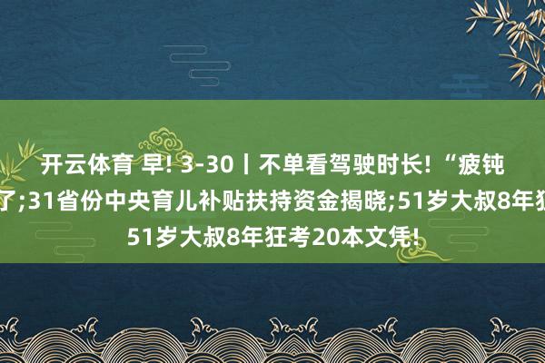 开云体育 早! 3-30丨不单看驾驶时长! “疲钝驾驶新规”来了;31省份中央育儿补贴扶持资金揭晓;51岁大叔8年狂考20本文凭!