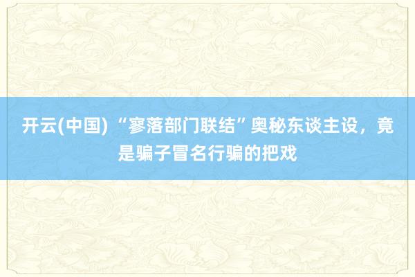 开云(中国) “寥落部门联结”奥秘东谈主设,竟是骗子冒名行骗的把戏