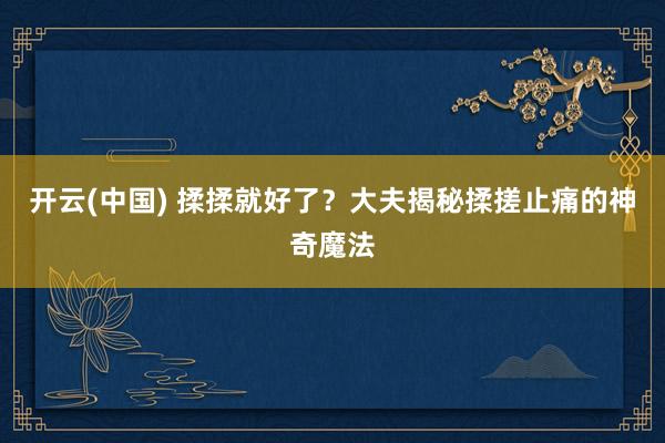 开云(中国) 揉揉就好了?大夫揭秘揉搓止痛的神奇魔法