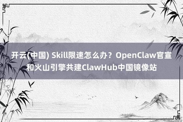 开云(中国) Skill限速怎么办?OpenClaw官宣和火山引擎共建ClawHub中国镜像站