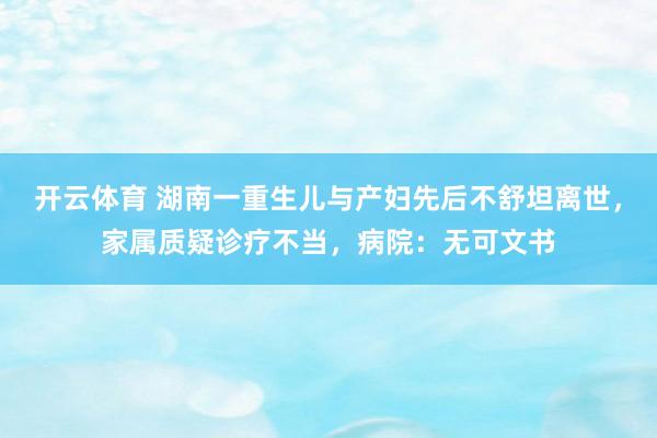 开云体育 湖南一重生儿与产妇先后不舒坦离世,家属质疑诊疗不当,病院:无可文书