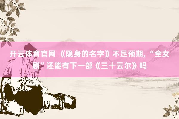 开云体育官网 《隐身的名字》不足预期, “全女剧”还能有下一部《三十云尔》吗