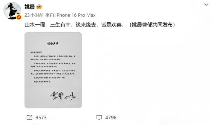 2026年3月16日,姚晨和曹郁的团结声明一出来,全网都忍不住惊羡:这才是成年东谈主该有的离别神气。