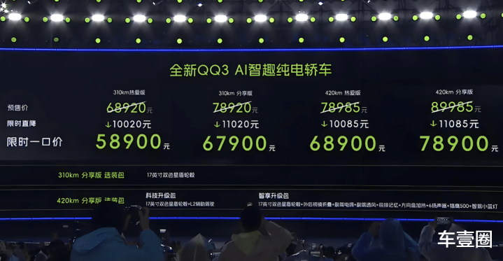 一代东说念主的芳华里,总绕不开一辆圆滔滔的奇瑞QQ。时隔二十余年,已往火遍八街九陌的国民“神车”如今奥妙无穷,已从内到外盖头换面。日前,奇瑞全新QQ3肃肃上市,共推出4款车型,限时价区间5.89-7.89万元,再加上购车优惠,小年青买起来也没压力。