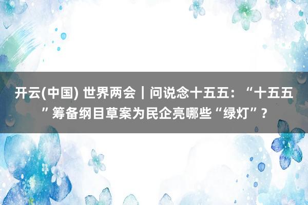 开云(中国) 世界两会|问说念十五五:“十五五”筹备纲目草案为民企亮哪些“绿灯”?