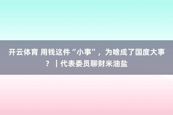 开云体育 用钱这件“小事”,为啥成了国度大事?|代表委员聊财米油盐