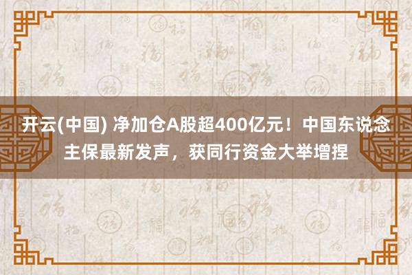 开云(中国) 净加仓A股超400亿元!中国东说念主保最新发声,获同行资金大举增捏