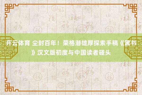 开云体育 尘封百年!荣格潜雄厚探索手稿《黑书》汉文版初度与中国读者碰头