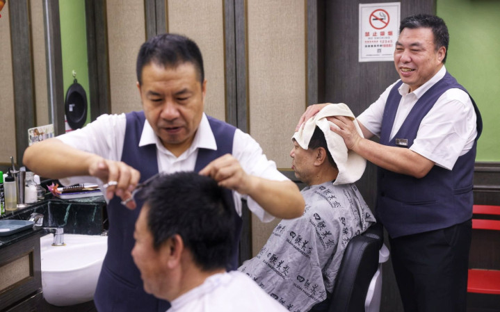 早上6点多,记者在四联好意思发王府井店看到,前来“剃龙头”的市民已在门前排起了长队。该店日常早上9点开门,今天提前到了7点,全天贸易14小时。剪发师们也早早来到店里,进行贸易前的准备使命,提前准备好棉质面巾、干毛巾、小围布,以及主顾列队用的号牌。